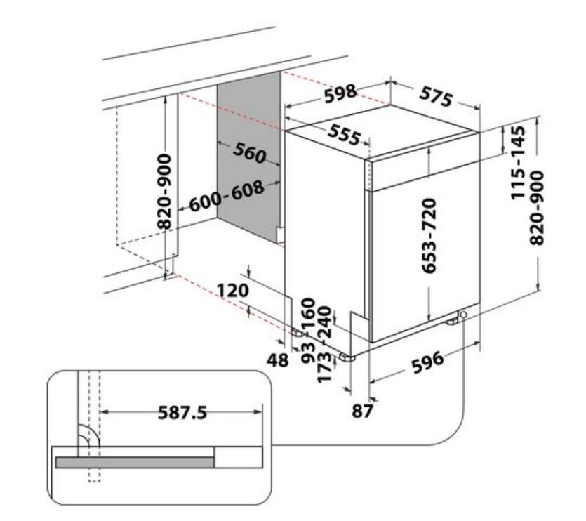 Einbaumaße (HxBxT): 820-900 x 550 x 598 mm