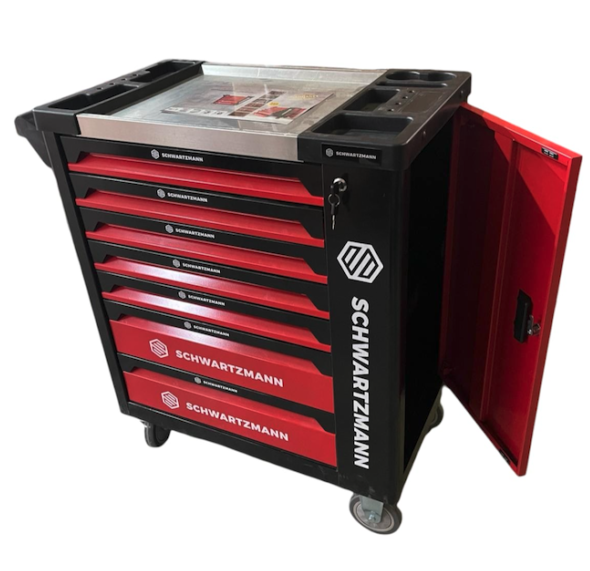 Schwartzmann® 250-teiliger Werkzeugwagen gefüllt – Werkzeugwagen auf Rollen – 7 Schubladen